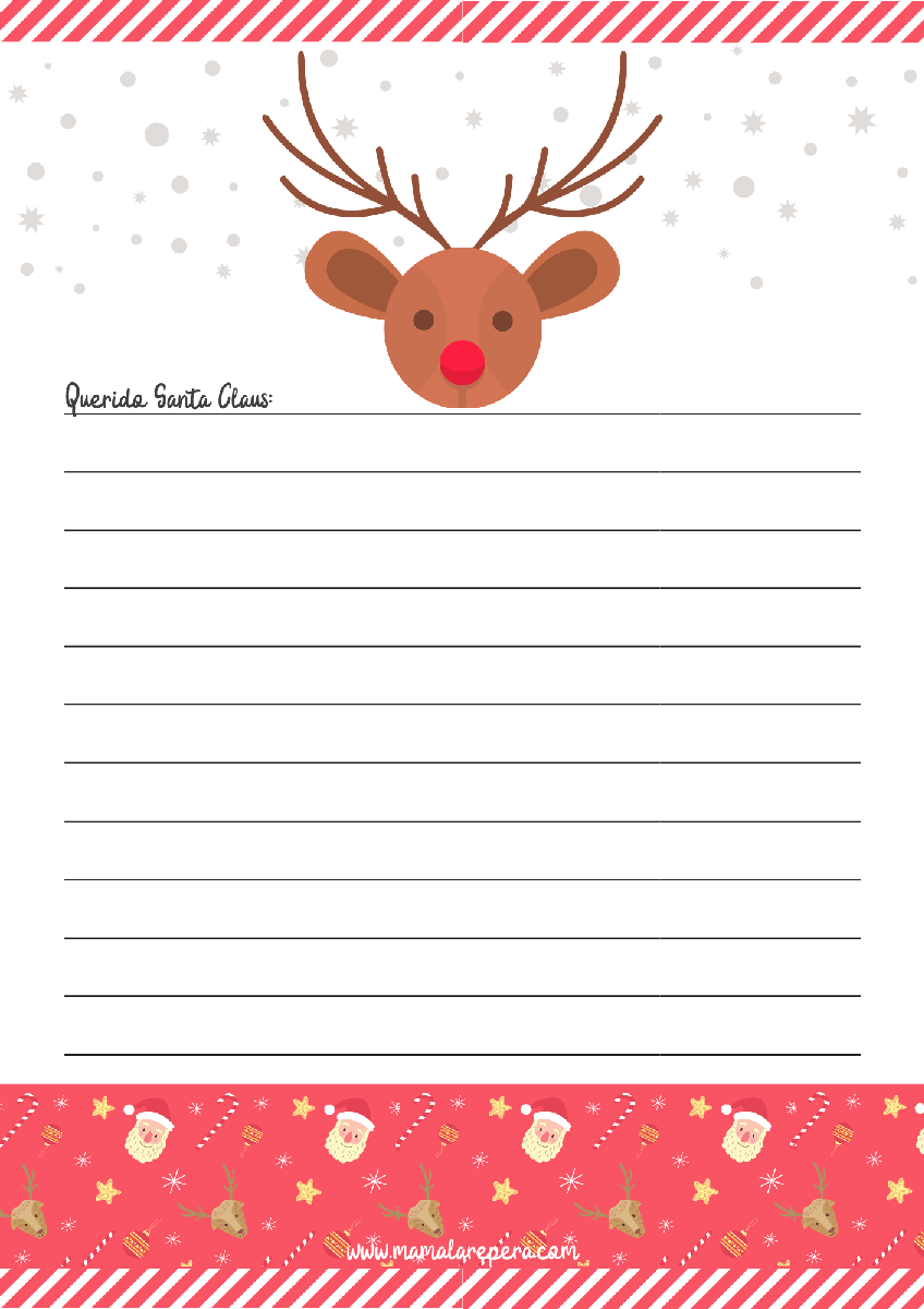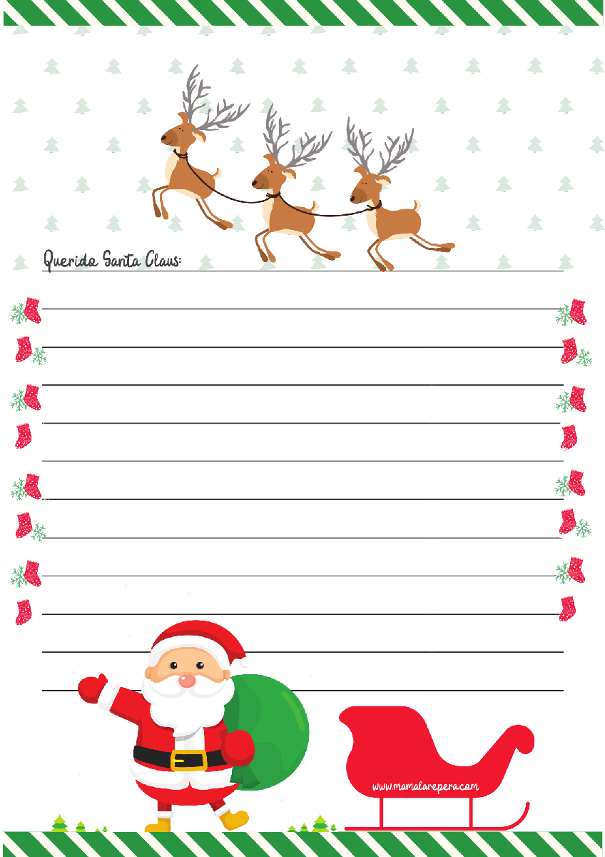 Carta Merry Christmas, con un simpático reno y Santa Claus en su trineo. Este diseño es el que ha escogido niña repera este año para escribir su carta.Para los amantes de los Elfos os dejo un diseño muy llamativo y navideño. No nos olvidemos que estos pequeños duendes trabajan muy duro durante todo el año en el taller de Papá Noel