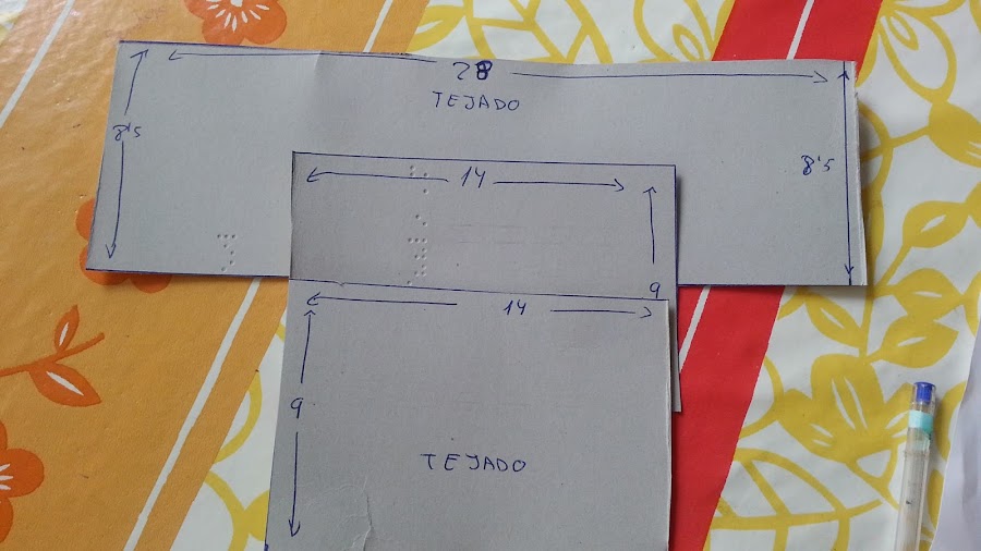 Damos la vuelta al cartón y empezamos a hacer el tejado.