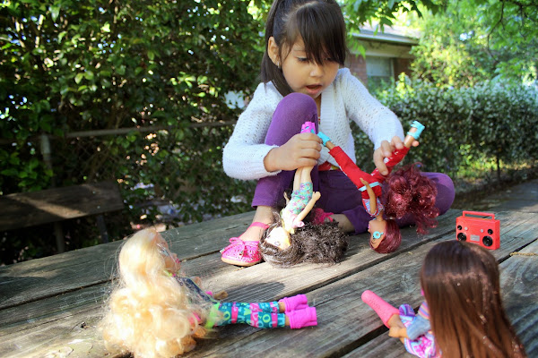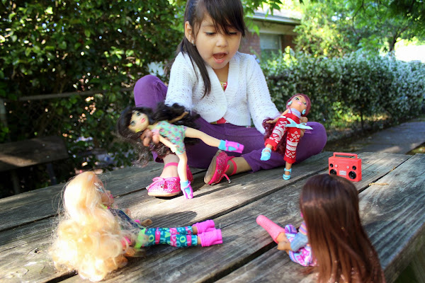 Y sí se trata de bailar y cantar, Natalia esta ahi ya que le encanta! Puede pasar horas bailando y cantando sus canciones favoritas. Y ahora que tiene estas muñecas que son tal como ella, estoy segura que habrá un sin fin de batallas de baile o "dance battles." Aquí hasta me diverti muchisimo con la actuación de Natalia con sus muñecas en el Hip-Hop dance battle de Roxxi vs. Viviana.
