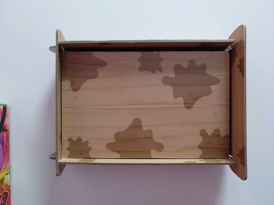 1 comedero de cartón con mecanismo de sonido (no necesita pilas) y adhesivos.