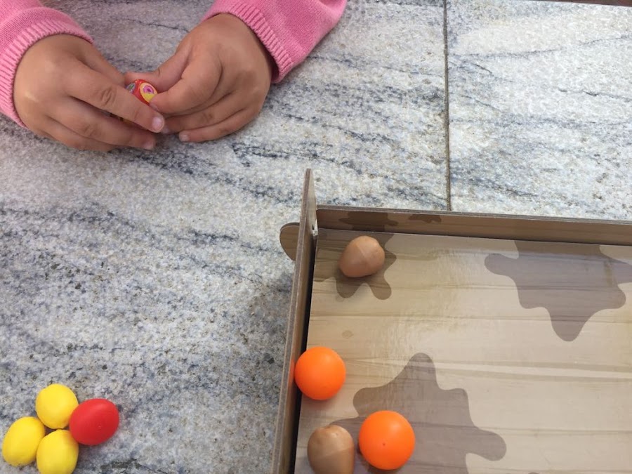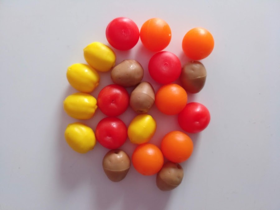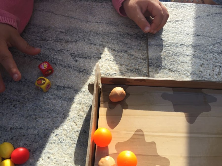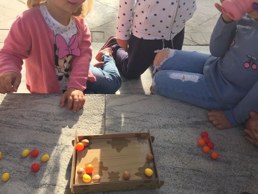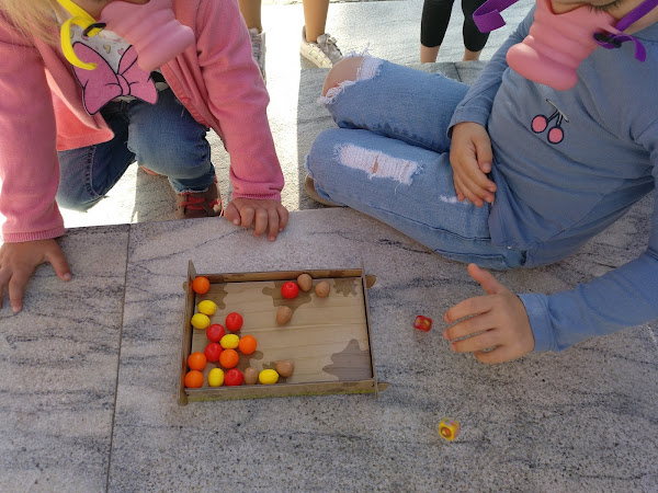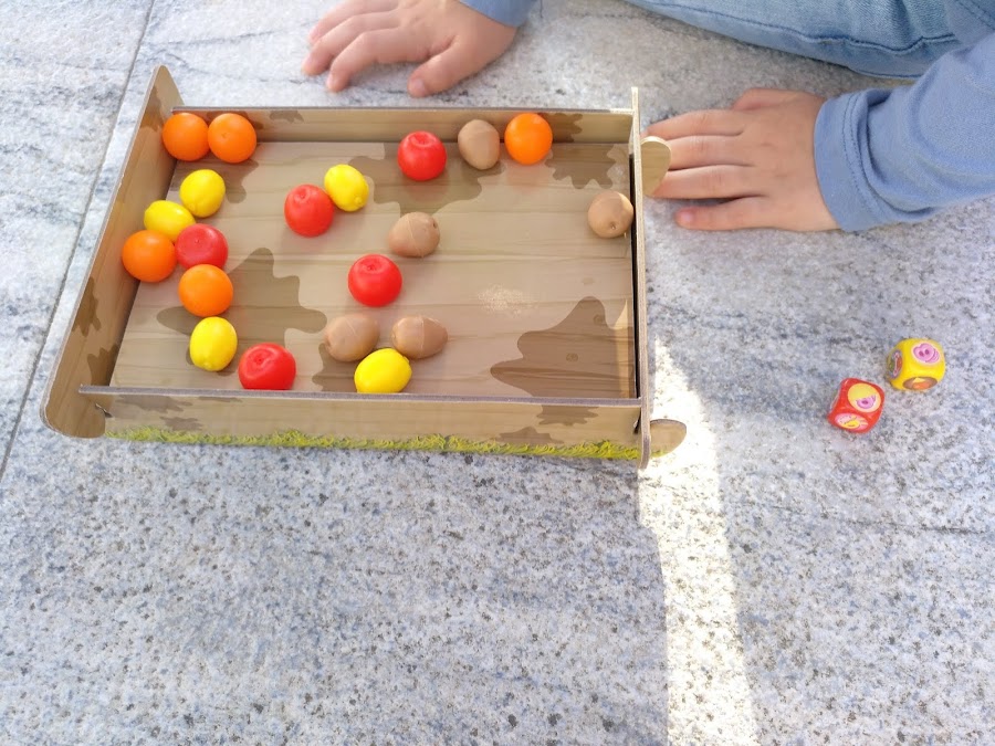 Mientras jugábamos trabajamos: colores, nombre de frutas y verduras, atención, coordinación y habilidades sociales.