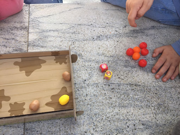 Los peques tienen que ponerse el hocico, tirar los dados y...¡al ataque! Pero deben darse prisa. El primero que consiga una pieza de cada tipo de fruta y verdura gana.