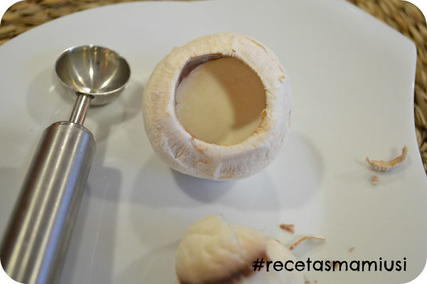 Limpiamos , lavamos y descorazonamos los champiñones .