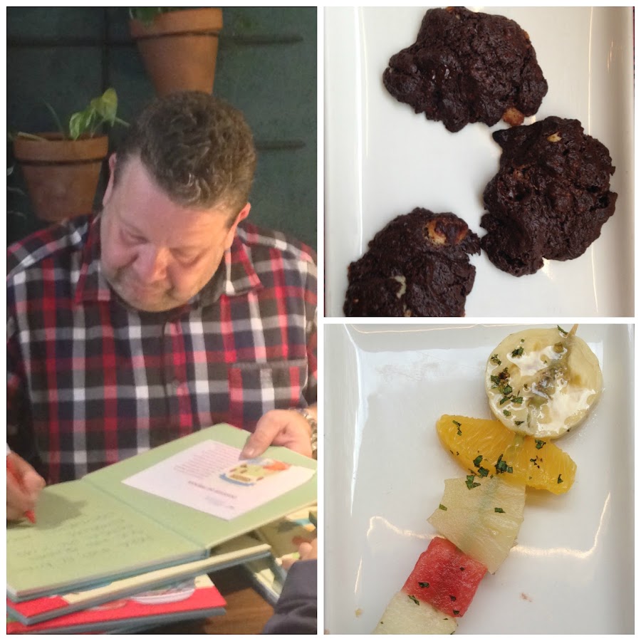 Como os cuento, la presentación se hizo mientras los niños merendaban chocolate con churros, unas brochetas de frutas, deliciosas galletas de chocolate negro (recién salidas), zumos de frutas y varias tartas con un aspecto muy apetecible.