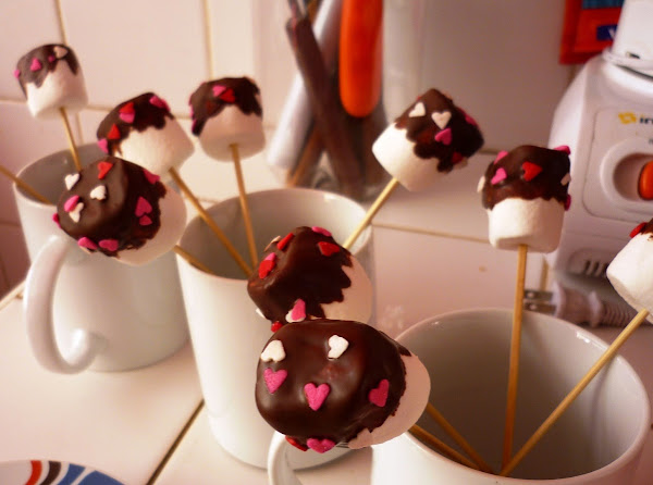 -En el microondas, puedes derretir el chocolate bitter, y de una manera muy sencilla cubrir la mitad del masmello. (Si le vas a agregar grajeas, tiene que ser antes de que seque el chocolate).