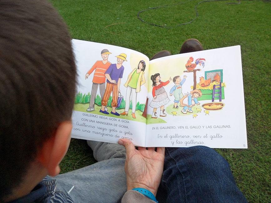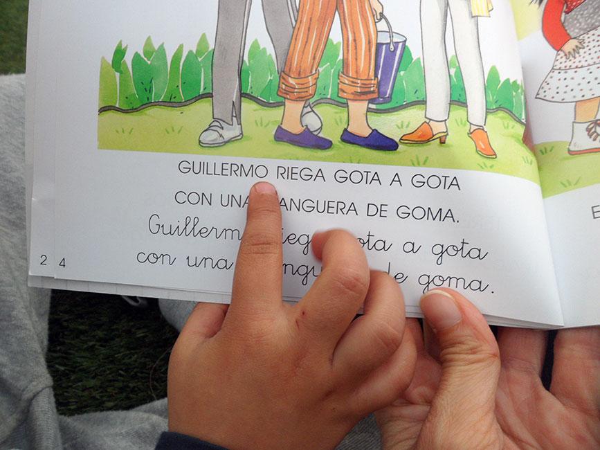 Cuando terminó, se limpió las manos y decidió seguir ayudándome a leer, para participar en la lectura y no perderse detalle. Realmente le encanta, siempre ha mostrado mucho interés por las letras, el habla y todo lo relacionado con la lecto-escritura. Así que, si lo pide, ¿cómo no se lo vas a dar?