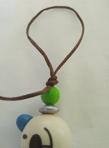 2º Haremos un nudo en el extremo de tal manera, para que nos quede la zona donde se va a enganchar el chupete.