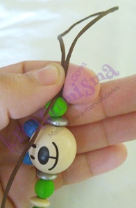 Después de pasar todas las cuentas y los dados de letras la cadena nos quedará totalmente montada. El orden de las bolas, las lentejas, la figura, etc... ya es a gusto personal.