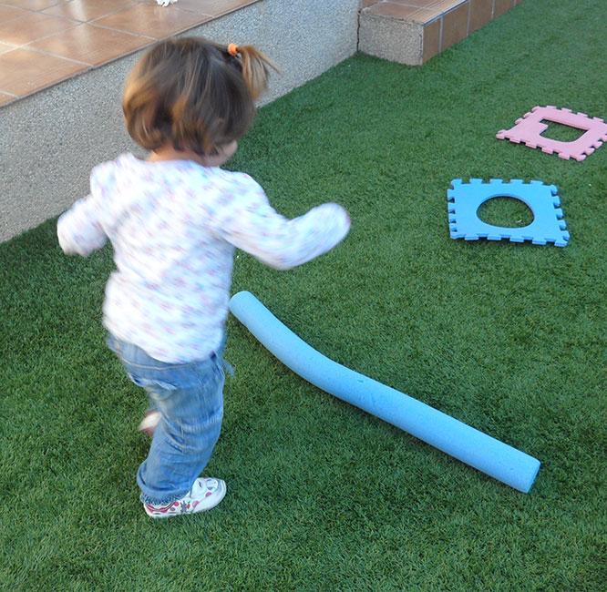 Cuando ya habían hecho el recorrido del derecho y del revés varias veces, pues decidí cambiarles algunas pruebas. Por ejemplo, el churro después del túnel tenían que saltarlo a la pata coja, las letras tenían que sortearlas corriendo haciendo curvas (no saltando de una a otra), la valla tenían que pasarla por debajo…