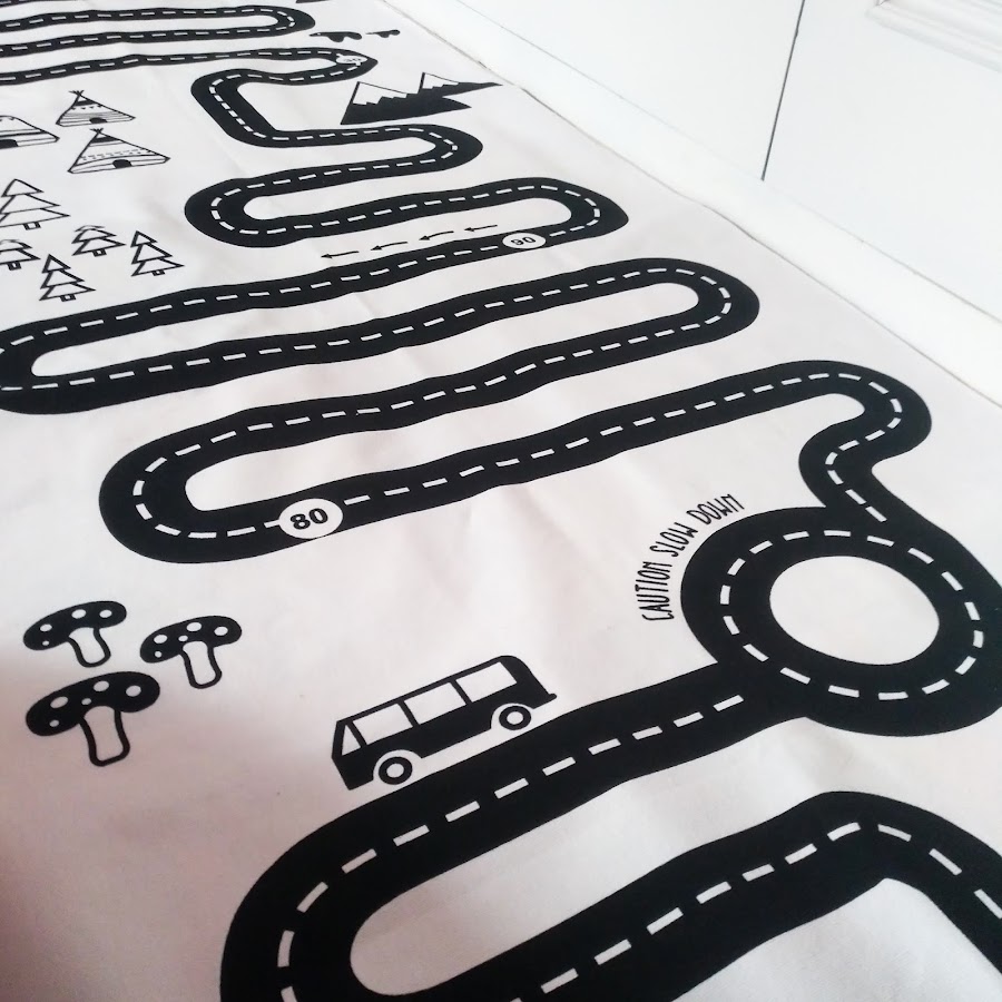 El diseño en blanco y negro es tendencia en decoración para habitaciones o espacios infantiles, y esta alfombra infantil con dibujo de carretera tiene el formato perfecto para colocarla justo delante de la cama o de una estantería de juegos. ¡Es ideal para cualquier rincón! Combina con todo. Su estampado ayuda a crear un espacio en el que dejar volar la imaginación y estimula el juego. Sobre ella podemos crear mini-mundos, ciudades y mil historias.