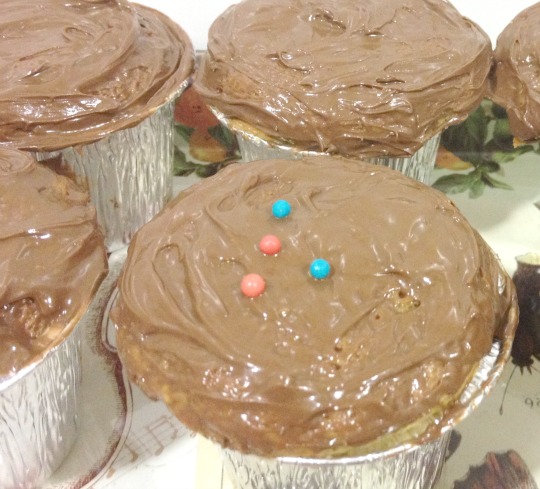 Nosotros extendimos una buena capa de nocilla sobre cada cupcake y en algunas de ellas pusimos también anisillos.