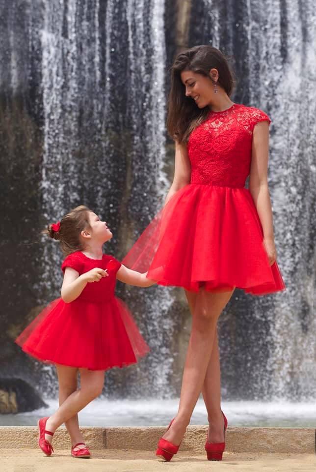 ¡El clásico rojo! En esta ocasión se trata de un vestido más sencillo pero que no deja de ser hermoso. Ideal para llevarlo a un cumpleaños con tu hija.