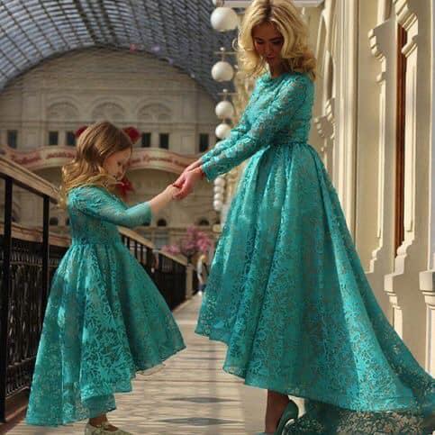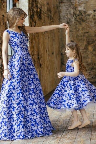 La idea no es disfrazarse con el mismo traje, más bien se trata de lucir elegantes y muy hermosas combinando un vestido de adulta y otro para la pequeña.