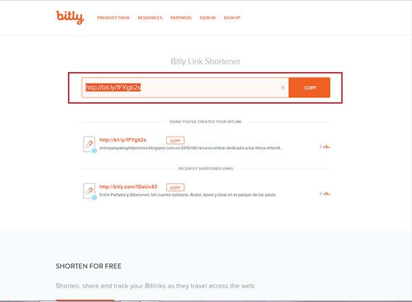 Inmediatamente después Bitly nos devolverá la URL acortada.