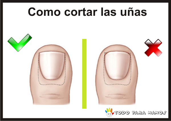 A la hora de cortar las uñas a tu bebé hazlo no muy al ras del dedo, no queremos cortes que pueden causar infecciones, lo ideal es que cortes donde tu te sientas seguro y cómodo.
