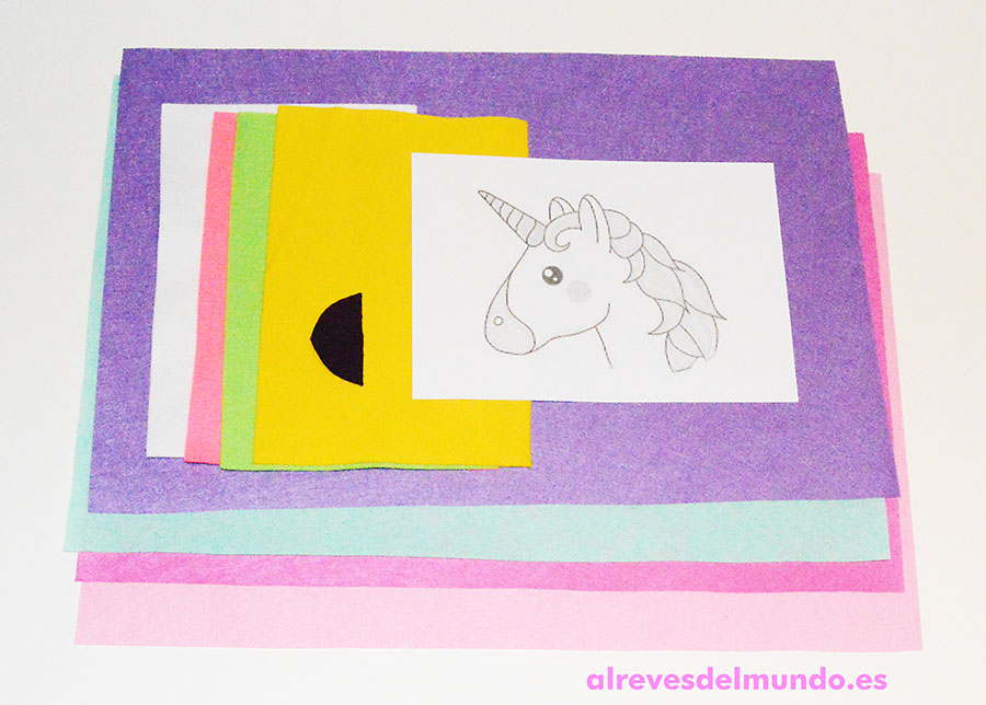 - Cortamos trozos de distintos tamaños y colores para hacer la cabellera y el cuerno