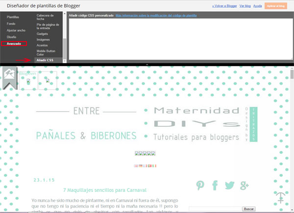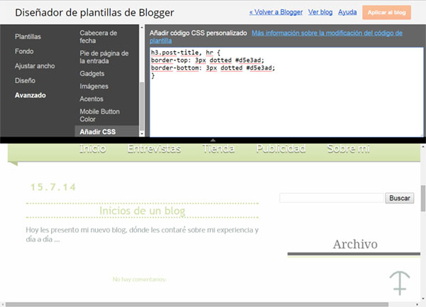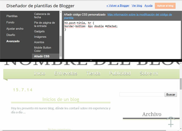 Vamos a trabajar en esta ocasión con CSS, no te preocupes, será más sencillo aún que con HTML... Para simplificar el proceso al máximo y no tener que andar tocando la plantilla en HTML (que sé que a muchas os da miedo) vamos a hacerlo de este otro modo :