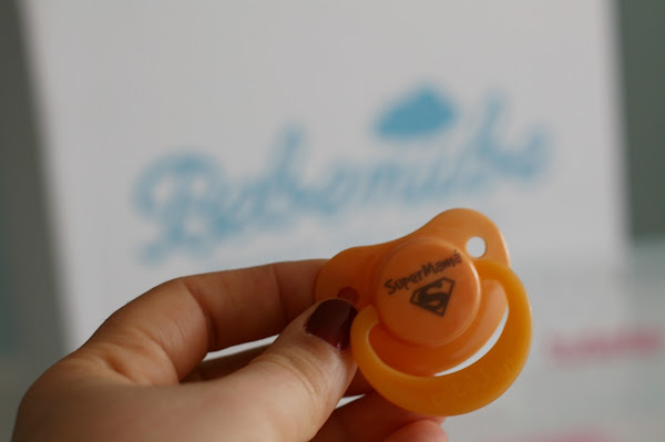 Chupete "Super mamá" de Tutete, el nuestro en color naranja y adorable.