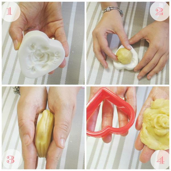 Ya sabéis que no soy muy amiga del sabor del fondant y la glasa me da bastante respeto, de momento. Pero eso no quiere decir que no podamos hacer con nuestras manitas unas galletas ideales de la muerte. Porque en lugar de decorarlas, las podemos modelar. Darles forma en relieve con un simple molde. No me digáis que estas flores de galleta no son preciosas y elegantes para presentar en la mesa. Y están riquísimas!! Vamos a ver paso a paso cómo hacerlas: