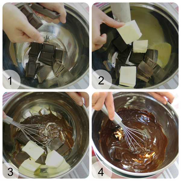 3. Retiramos la cazuela del fuego y metemos dentro el bol con el chocolate y la mantequilla, al baño maría.