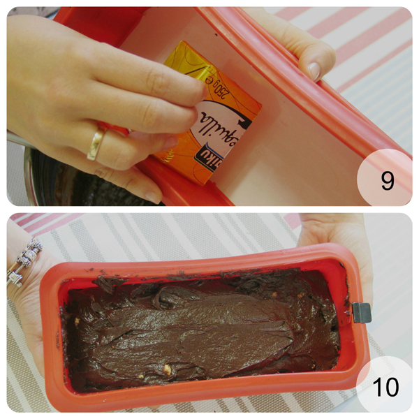 10. Volcamos la mezcla y la metemos al horno, precalentado a 160 grados, durante 50 minutos