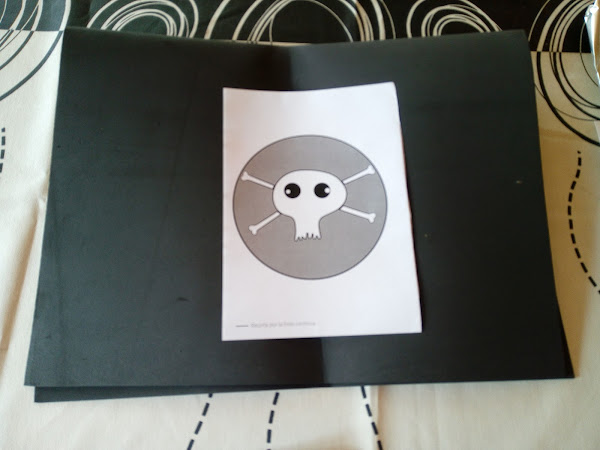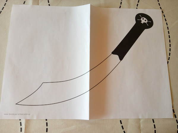 Es una actividad muy entretenida y como tenía el traje de pirata con parche de mi hija, me venía genial para completarlo porque esta caja traía junto al libro, los materiales para hacer en goma eva el gorro de pirata y la espada en cartón forrándolo con papel plateado y la empuñadura de goma eva.
