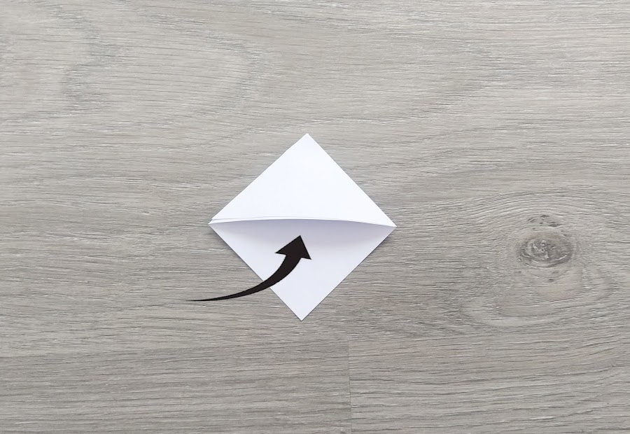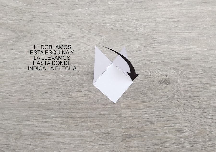 6. Doblamos la esquina de la izquierda llevándola al extremo donde indica la flecha.