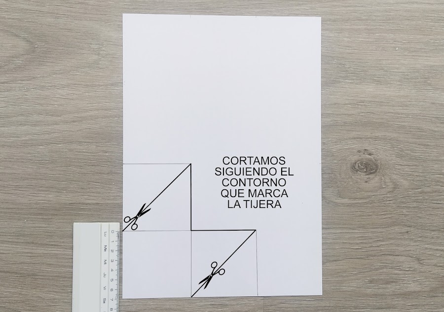 4. Después de recortar siguiendo el contorno marcado, debería quedarnos una figura con esta forma.