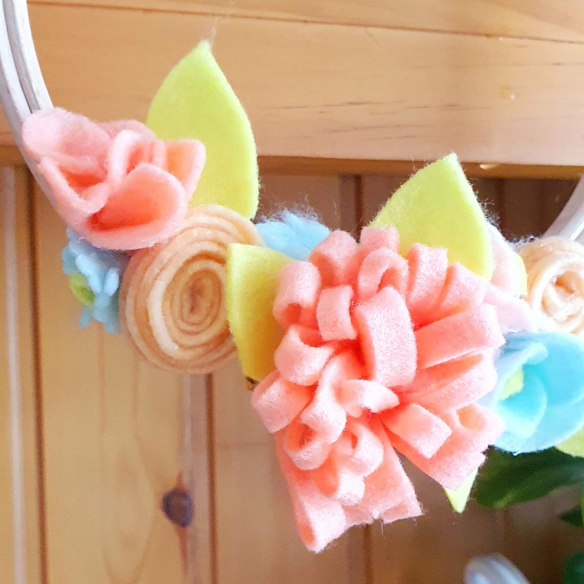 Fieltro: estas hojas de fieltro son super suaves. En las fotos puedes ver como se moldean perfectamente y como consiguen un efecto “lana” que es preciosos. Además los colores empolvados dan un aire delicado al resultado final.
