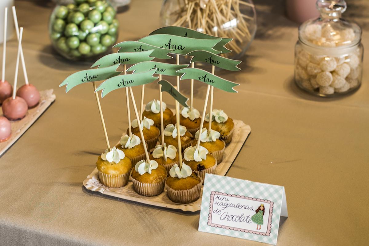 Mini Magdalenas de vainilla rellenas de chocolate con crema de queso