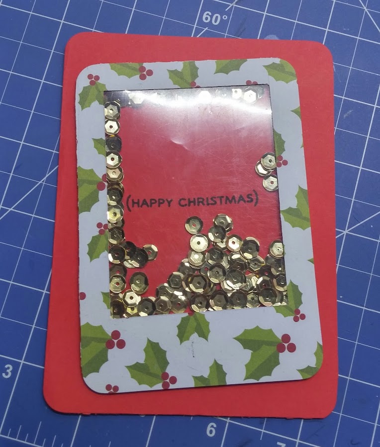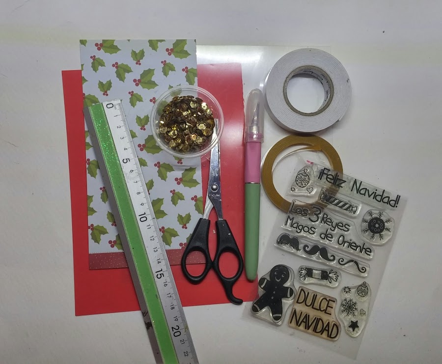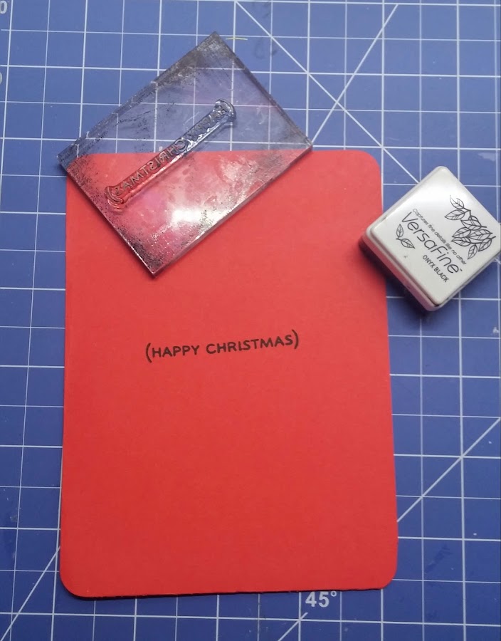 6. En la cartulina roja he impreso un sello con el mensaje navideño de "HAPPY CHRISTMAS".
