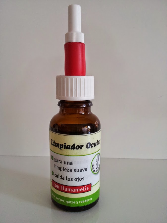 * Limpieza ocular (limpieza del ojo y alrededores) : Humedecemos un algodón con unas gotas de producto y limpiamos alrededor del ojo. NUNCA usaremos algodón, ya que deja fibras que pueden acabar en el ojo de nuestra mascota.