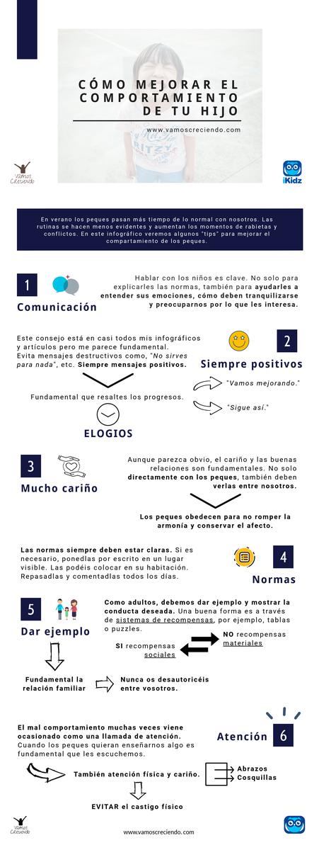 En el infografíco de hoy, os dejo algunas claves para mejorar el comportamiento de los peques, especialmente en esta época del año en la que pasan mucho más tiempo con nosotros y apenas tienen rutinas.
