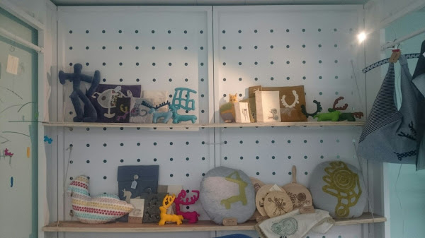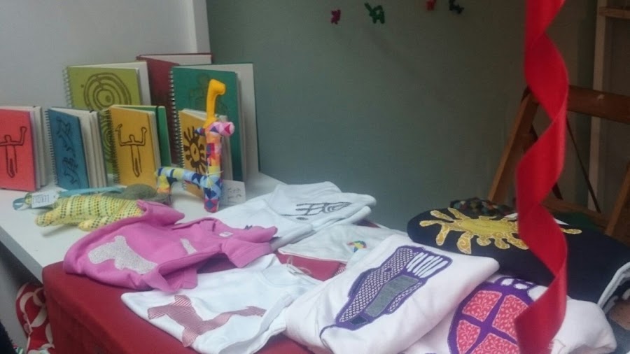 Un puesto que me llamó la atención fue el de LEROLE, un grupo de chicos que han estudiado arte y arqueología( creo q es asi sino que me diga alguien para cambiarlo) y que decidieron sacar partido a lo que saben pero creando figuras relacionadas con la prehistoria y arte rupestre pero materiales tipo fieltros, algodón, algunos rellenos para jugar con los volúmenes, también móviles de techo, camisetas, vamos una gente la mar de creativa, a mi francamente me encantó, y la chica super maja. Podeis encontrarlos aqui https://www.facebook.com/LerolePuntadasNaPedra/