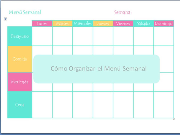 Comparto contigo la plantilla de Menú Semanal que he diseñado, para que te animes y la utilices a la hora de organizar tu menú semanal, ¡con una semana de antelación! Todo un reto...
