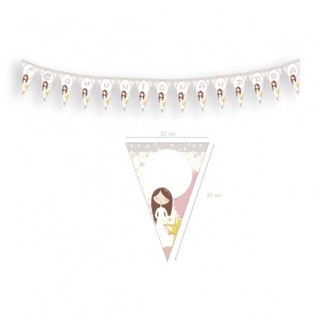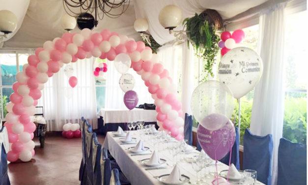 Para decorar el lugar puedes colocar globos de colores o con motivos de comunión. Muy útiles también los banderines de comunión para decorar tanto las mesas como las paredes.