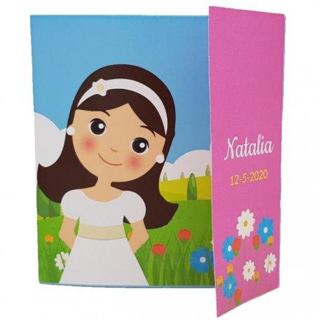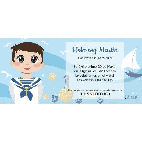 Elige unas bonitas invitaciones personalizadas con tu texto: indica la fecha, la iglesia, horario, lugar de celebración y los números de teléfono para que puedan darte su confirmación.