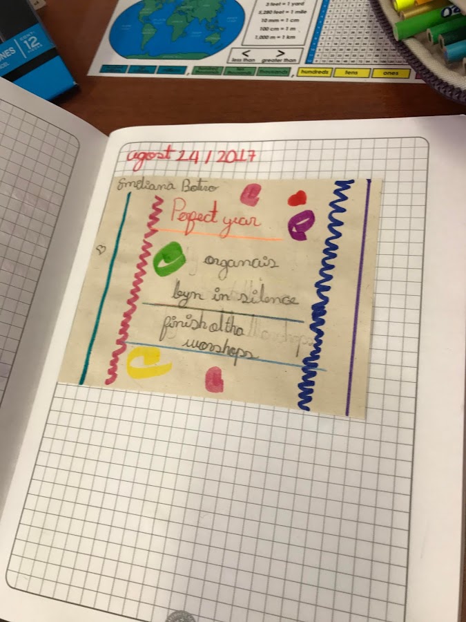 Después de esto cada una de las niñas pegó en su cuaderno su propios propósitos para tenerlos en cuenta a lo largo del año.
