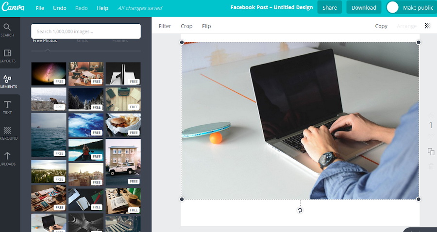 Este diseño será para un post de facebook. Escoge una imagen para tu fondo, puedes incluso subir una de tu pc en uploads. Yo escogí la de una persona trabajando en una portatil.