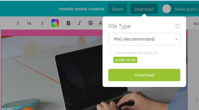 Si ya estas conforme con el resultado y la combinación de fuentes y colores, puedes descargarlo a tu pc