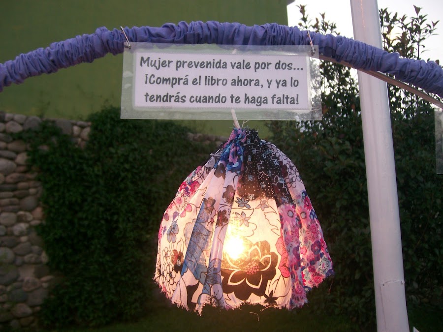 Me armé un puesto liviano, plegable y muy creativo con un tendedero de ropa y un caño de plástico de esos que se usan para las instalaciones de agua corriente, con el que hice un arco para sostener la lámpara. Todo revestido en tela, para que no se vea lo que hay debajo. Vean cómo quedó: