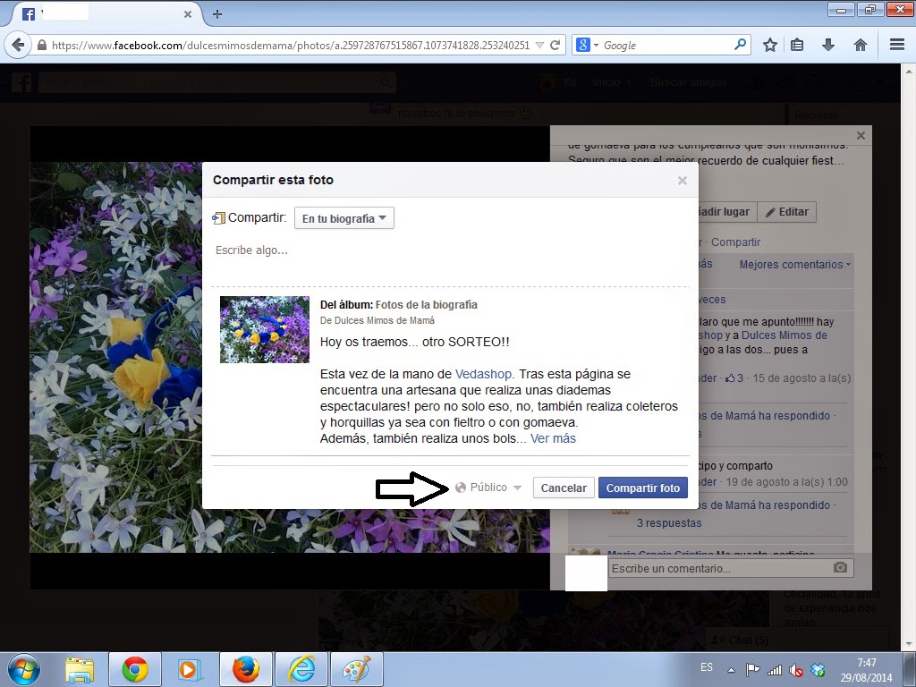 Gracias.SI ESTÁIS COMPARTIENDO UNA FOTO O PUBLICACIÓN: tras darle al botón "compartir" comprobad que en la parte de abajo aparece la bola del mundo.