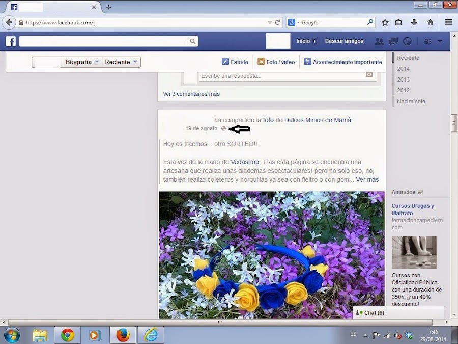 3. Comprobad que en la parte superior de la publicación aparece la bola del mundo.