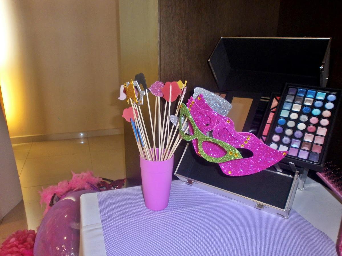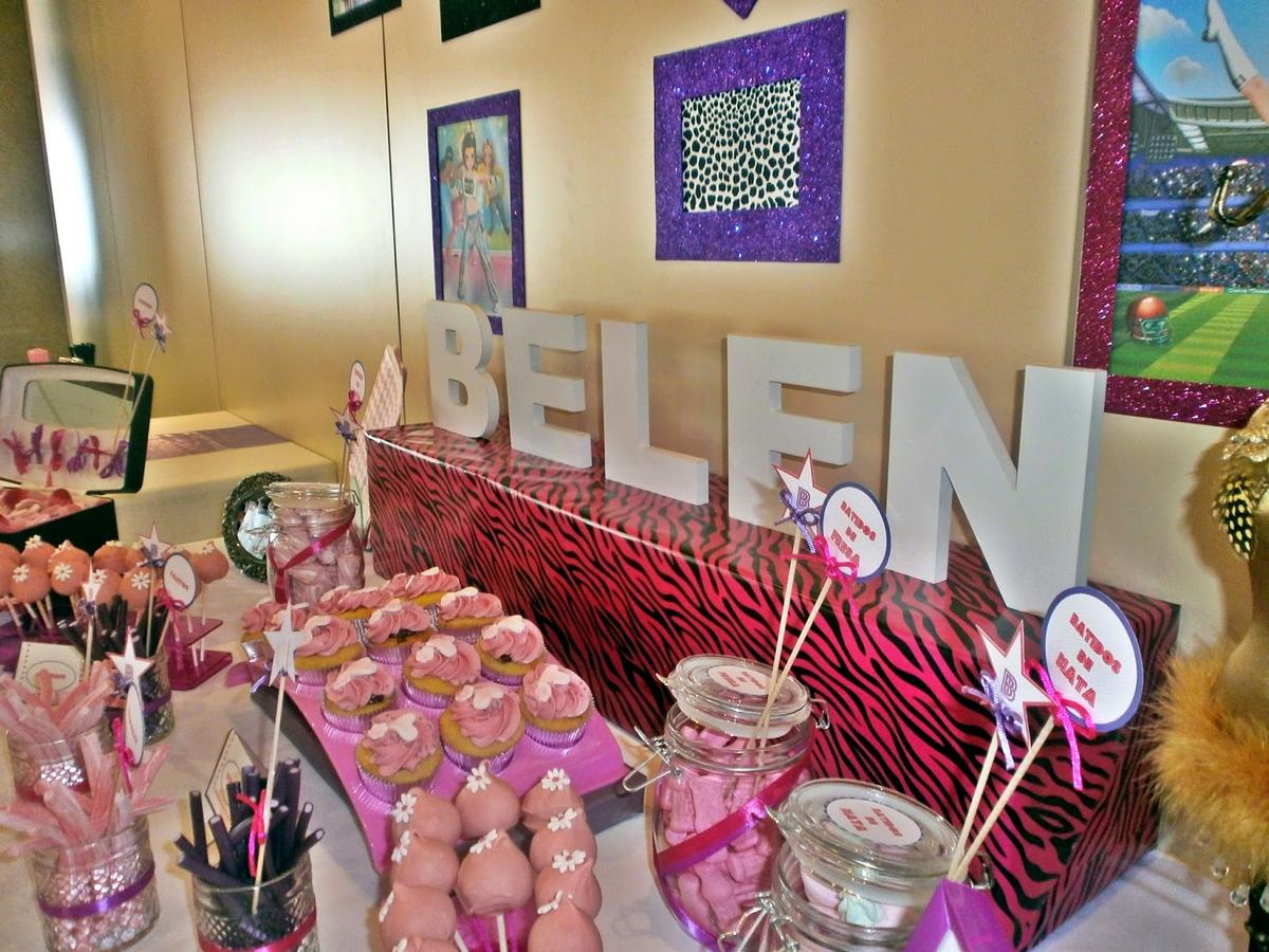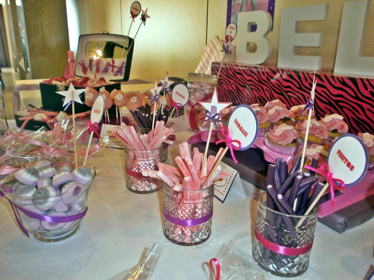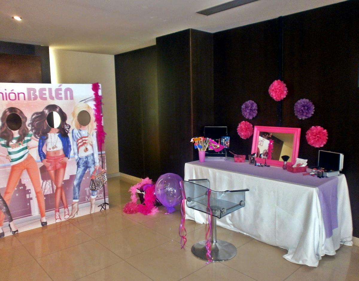 Preparamos una Candy Bar repleta de golosinas y cupcakes; un Photocall para ser auténticas estrellas y a su lado colocamos un Corner Beauty por eso de pasar por chapa y pintura antes de pasar por la alfombra; pero sin olvidarnos que Belén sigue siendo una niña colocamos una gran mesa imperial para ella y todos sus amigos repleta de globos de los colores elegidos para toda la Comunión, rosa, fucsia y morado.
