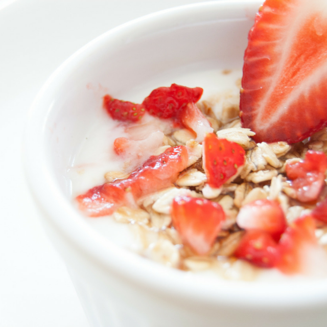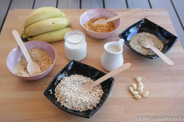 El muesli con avena arrollada o quinoa inflada, coco rallado, almendras fileteadas y frutas pasas.