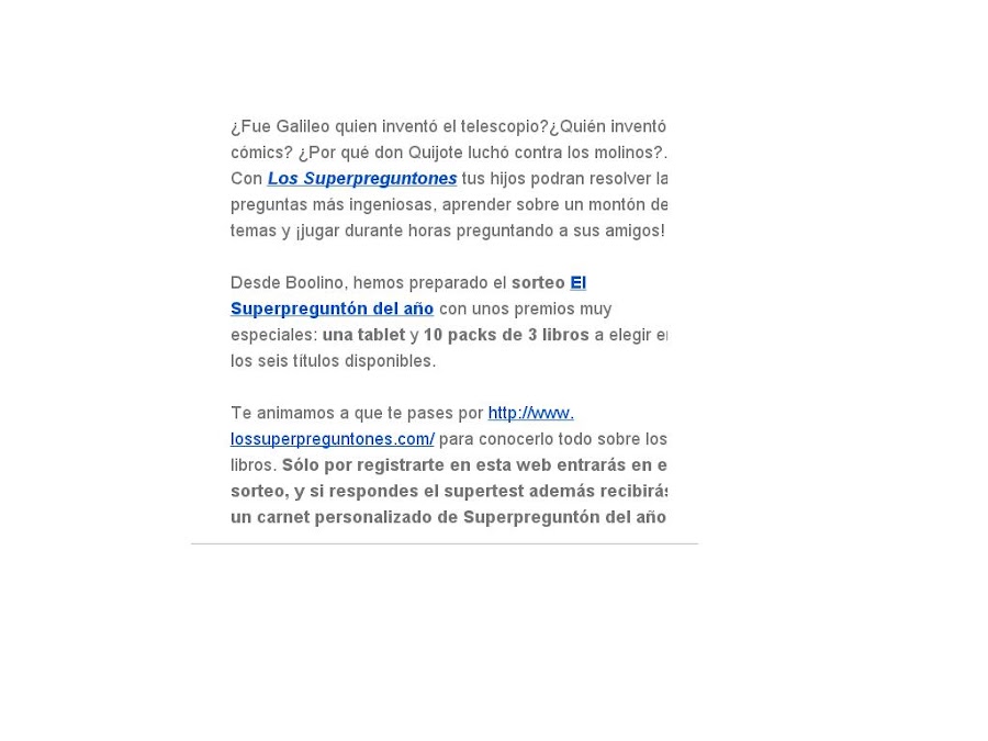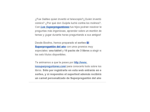 Esta es una copia del correo que me ha enviado #Boolino para informarme de este nuevo concurso que han organizado con los #Superpreguntones.
