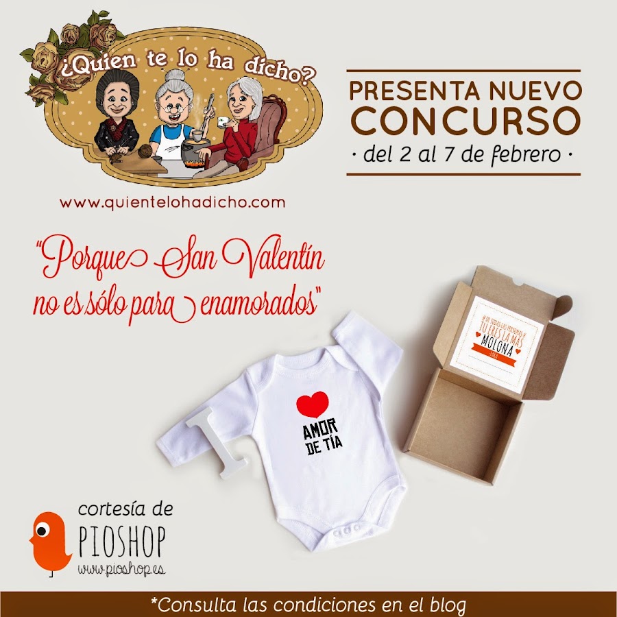 Hoy da comienzo un nuevo concurso en "Quien te lo ha dicho" de la mano de nuestros amigos de Pioshop que nos traen un body es 100% algodón con el mensaje : "amor de tía". Porque San Valentín es un día para dar y regalar amor, y el amor de una tía es un amor incondicional.