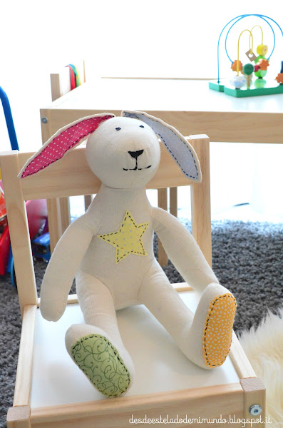 Cuando se hace algo con el corazón realmente se siente y no saben cuanto me faltaba hacer lo que mas me gusta, las manualidades y escribir en el blog. Hace algún tiempo que me hice amiga de una señora con un negocio pequeño de bricolaje, no es un gran negocio pero es tan especial y lleno de detalles lindos. Hace algunos días el negocio estaba de rebajas y pues claro no podía perdérmelas, así que en un ratico libre que tenia me di una vuelta. Hay una marca alemana de cosas manuales que conocí gracias a Anna y su negocio, Rico-design es una marca donde hay miles de cosas manuales "pre-fabricadas" para todas las edades y gustos. En las rebajas había este conejito pre-fabricado a un precio muy muy bueno al cual no podía negarme y me lo traje a casa. Con los retazos de tela que tenia guardados y algunas puntadas así quedo de lindo este conejito!.