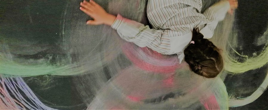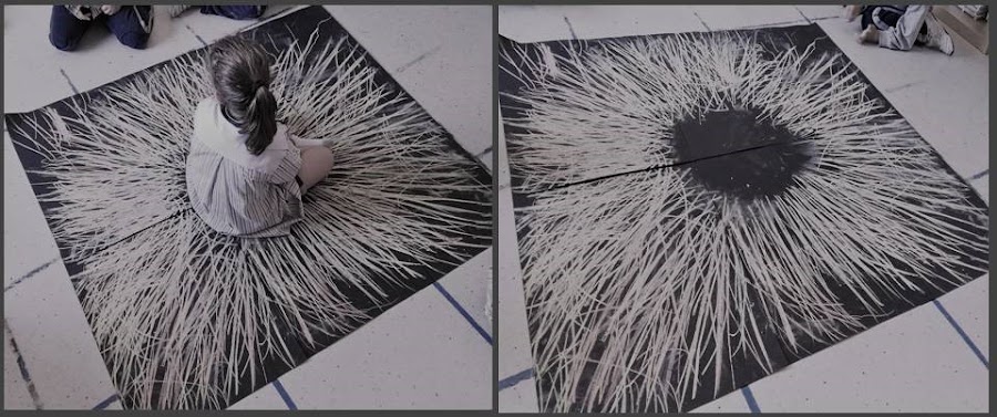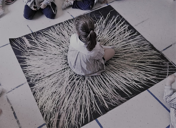 Estabamos trabajando la medida y midiendo, creando dibujos con referencias corporales, influenciados por el hombre de Vitruvio de Leonardo Da Vinci. La medida del cuerpo y nuestra relación con el espacio, las huellas de nuestros movimientos en simetrias y en constantes ritmos crearon los niños; varias coreografías individuales y grupales que ya forman parte de nuestra memoria. Lo sutil del arte puede que este relacionado con estas huellas afectivas que se generan en el aula y en esas relaciones únicas y propias del grupo.