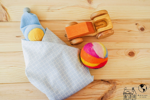Los días antes de que Ojazos llegara a casa, Sunflower y yo le preparamos un kit de bienvenida con algunos juguetes hechos a mano de inspiración Waldorf.